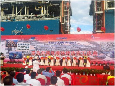 2017年8月15日,全球规模最大的液化天然气项目 -- 亚马尔(Yamal LNG)项目最后两个模块在中国海洋石油工程(青岛)有限公司(以下简称“海油工程”)建造完工并举行了庆典仪式,同时也是该项目在以中国海洋石油工程(青岛)有限公司为代表的整个亚洲场地模块建造工作的完美收官。作为海油工程的签约认证机构 VCB (Vendor Certification Body),SGS 通标标准技术服务有限公司青岛分公司总经理兼电力及公共设施事业部总监王大章先生应邀出席此次亚马尔项目模块建造完工庆典,标志着 SGS 为海油工程提供的各项技术支持亦宣告完美落幕。