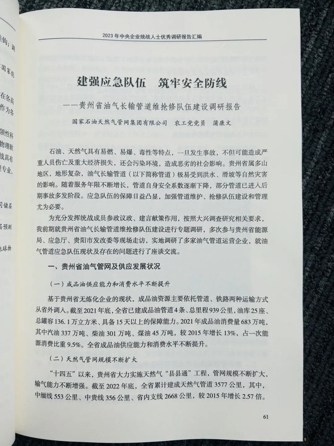 就贵州省油气长输管道维抢修队伍建设