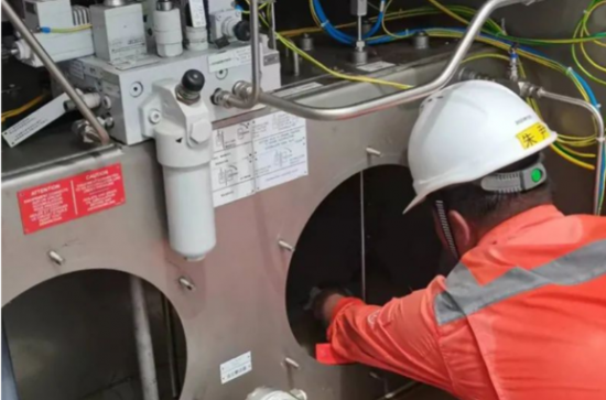 5月10日,福建应急维修驻漳州项目部与漳州LNG技术维修部通力合作,历时6小时顺利完成了800升卸料臂乳化液压油的更换工作,为漳州LNG项目5.20顺利投产奠定坚实基础。