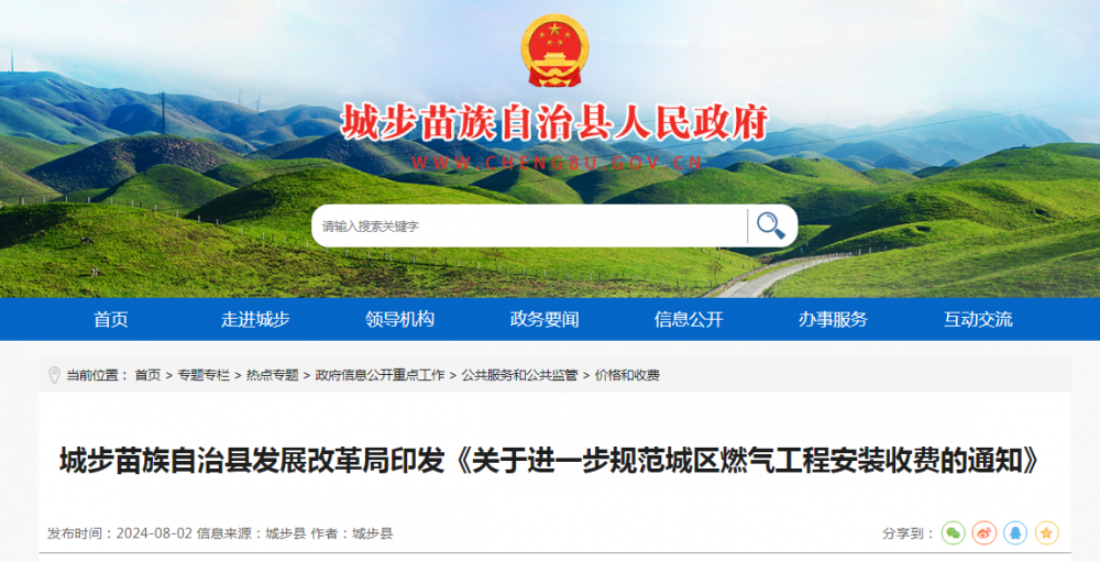 2024年8月2日,城步苗族自治县发展改革局印发《关于进一步规范城区燃气工程安装收费的通知》。
