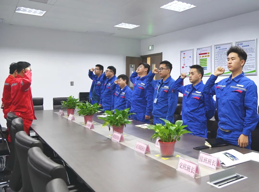 “珍爱生命,防范风险,遵规守纪,确保安全!”每天储罐事业部的班前会都会响起铿锵誓言,安全风险研判已成为班前会的“规定动作”,随机抽考操作参数与安全理念的场景,已是储罐生产运行班组的日常。大力推行“一日一题”+ 安全操作卡实战演练,将核心工艺分解为数百个操作要点。交班班长复盘设备运行参数与风险点,当班班长细化任务清单,构建全面的安全生产责任体系,培育人人讲安全、查安全的氛围。