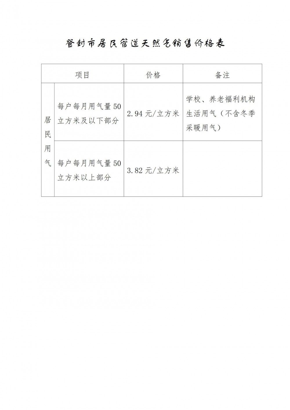 附件:登封市居民管道天然气销售价格表