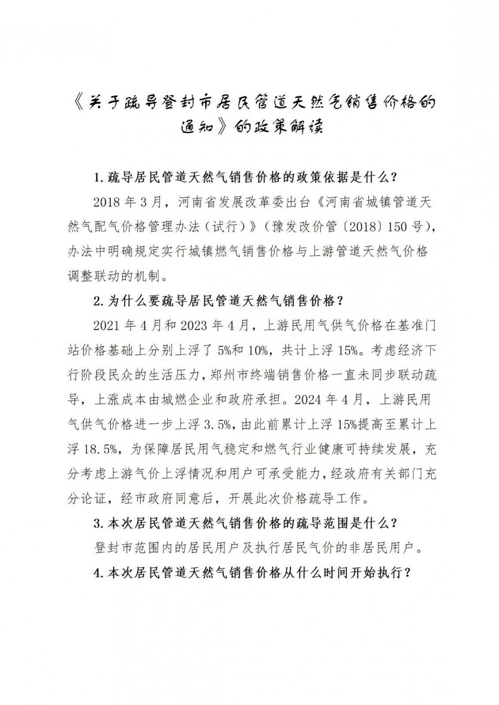 《关于疏导登封市居民管道天然气销售价格的通知》的政策解读.docx