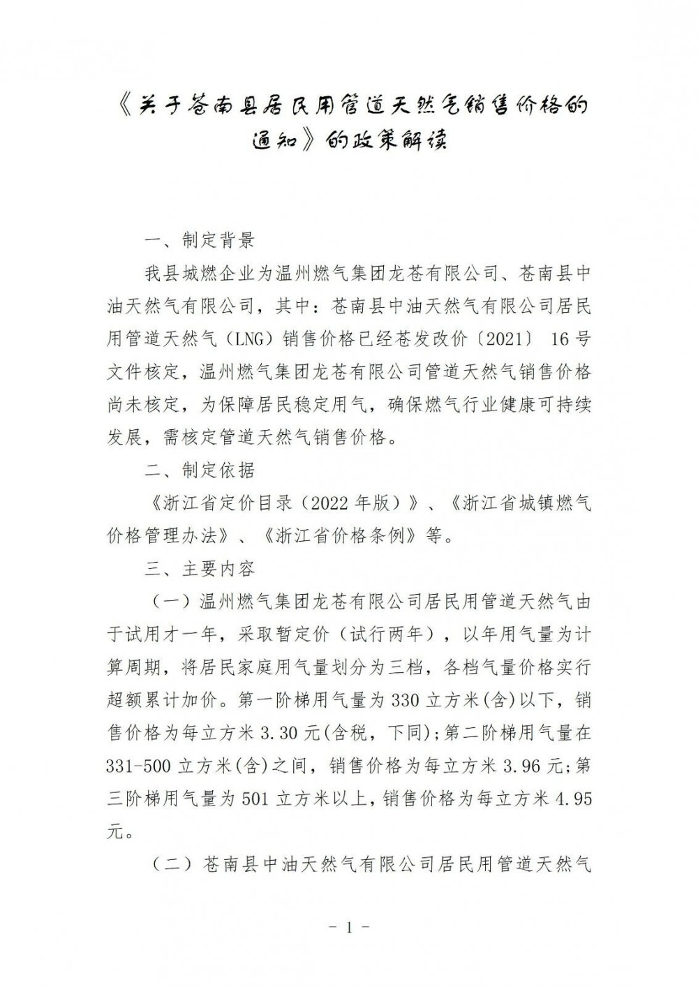 附件:政策解读-《关于苍南县居民用管道天然气销售价格的通知》.docx