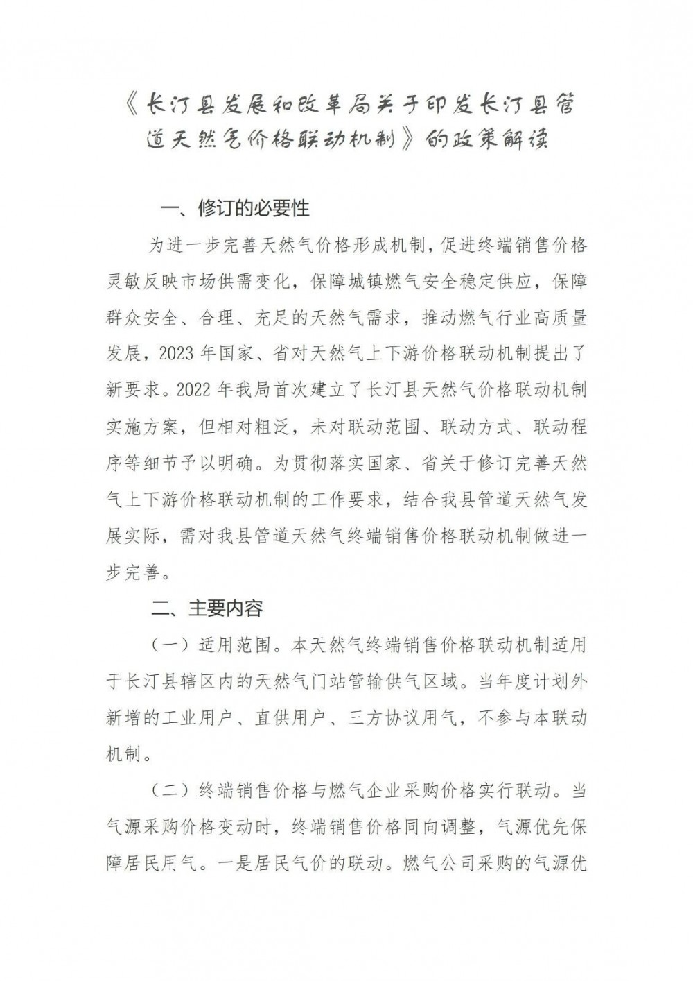 长汀县发展和改革局关于印发长汀县管道天然气价格联动机制的政策解读.wps